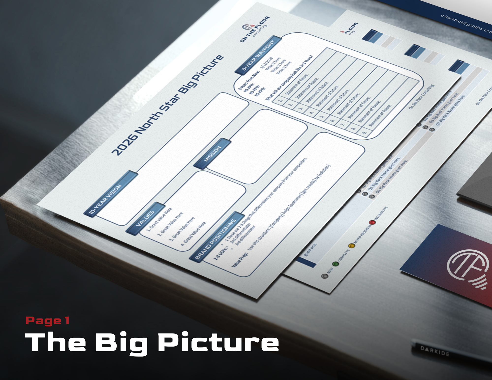 Two pages you can print, tack to the wall, and actually run your business from.